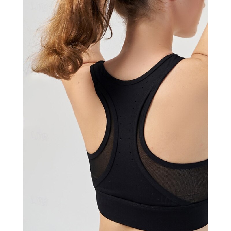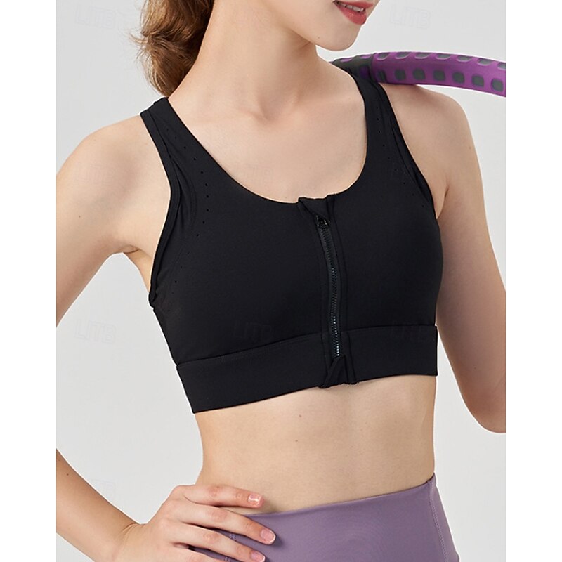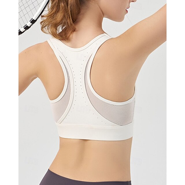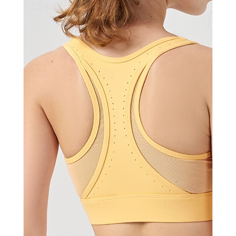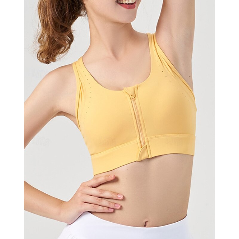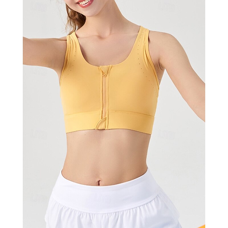 More information about Women's Solid Colored Tennis Bra Sleeveless Mesh Front Zip Shockproof Moisture Wicking Breathable Tennis Golf Jogging Round Black White Yellow Tennis Clothing