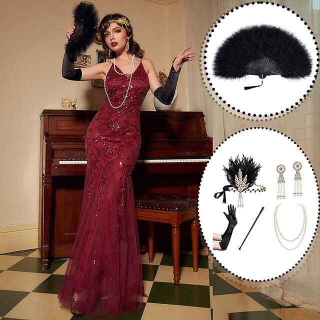 $81.99 - Set with Maxi Flapper Dress Feather Headband Fans Opera Gloves Necklace Earings Cigarette Holder Women's Roaring 20s 1920s Outfits Cocktail Masquerade Wedding Prom Gatsby Christmas Attire Party Dress 2025. Shop for cheap Outfits online? Buy at lightinthebox.com on sale today!