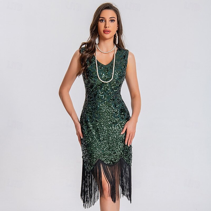 $41.99 - Retro Vintage Roaring 20s 1920s Above Knee Flapper Dress Cocktail Dress The Great Gatsby Flapper Girl Sequins Fringe V Neck Fancy Dress Women's Christmas Halloween Carnival Wedding Evening Party 2025. Shop for cheap Dresses online? Buy at lightinthebox.com on sale today!