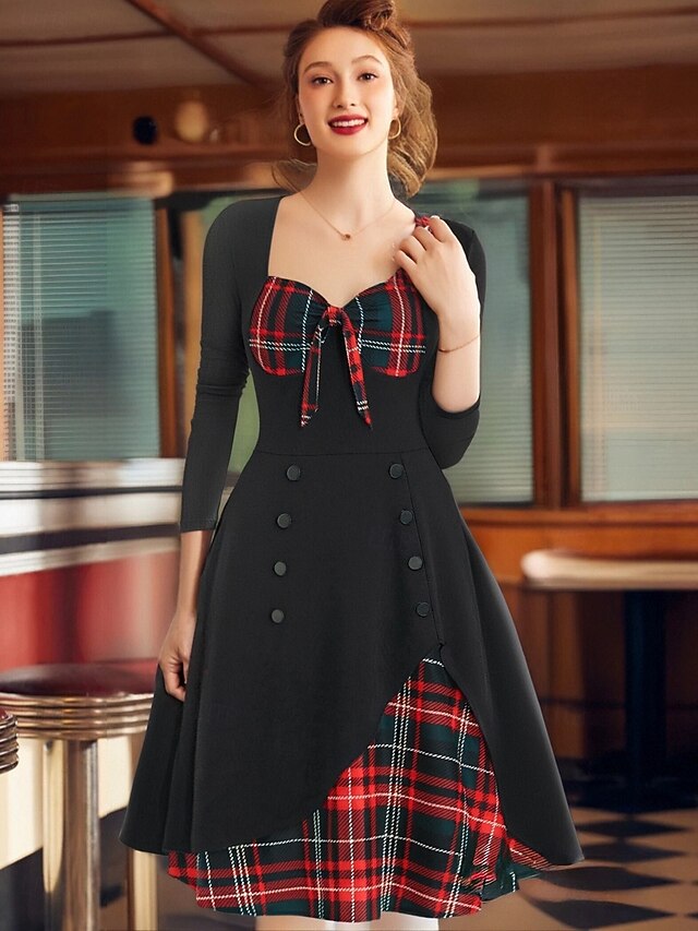 This Retro Vintage 1950s Cocktail Dress Midi Swing Dress Flare Dress Christmas Party Dress Tartan Check Fancy Dress Women's Christmas Carnival Masquerade Event / Party Retro Theme Party Festival Adults' combines elegant design with practical functionality. Every detail has been carefully considered to ensure you get the leading possible experience. The supreme construction means this product will serve you well for years to come.