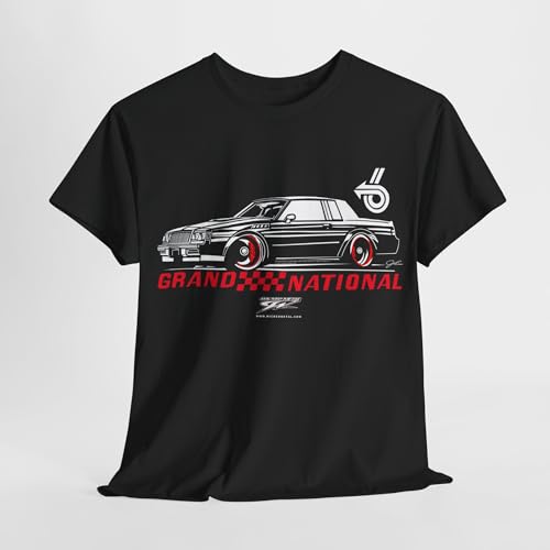 - ICONIC DESIGN: Features a striking front center chest print showcasing the legendary 1987 Buick Grand National in sleek side-profile view.