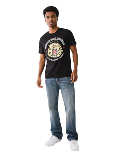 Why Choose True Religion Men's Tiger Face Bling Short Sleeve Tee - Casual Graphic Crew Neck T-Shirt-Jet Black?