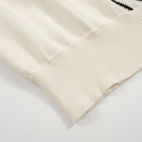 OXKNIT Mens White Apricot 60s V-Neck Polo Shirt Rhombic Pattern Knit Golf Polo