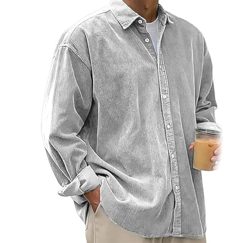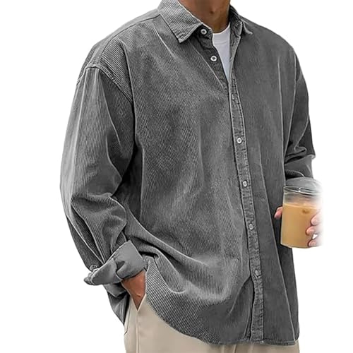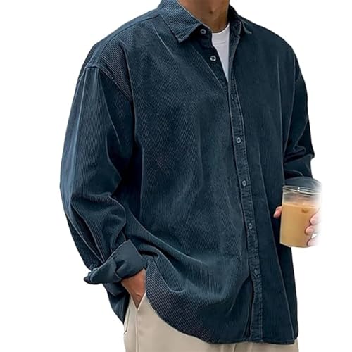 Pacificozy Men's Shirts, current Corduroy Urban Casual Daily Long-Sleeved Shirt, Loose Solid Lapel Thick Jacket