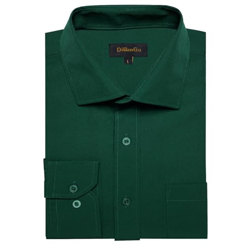 DiBanGu Long Sleeve Button Up Shirts for Men Casual Business Shirt with Pocket Solid Regular Fit Shirts for Formal Wedding