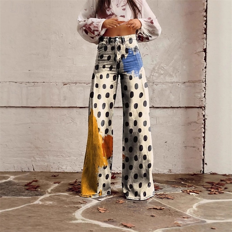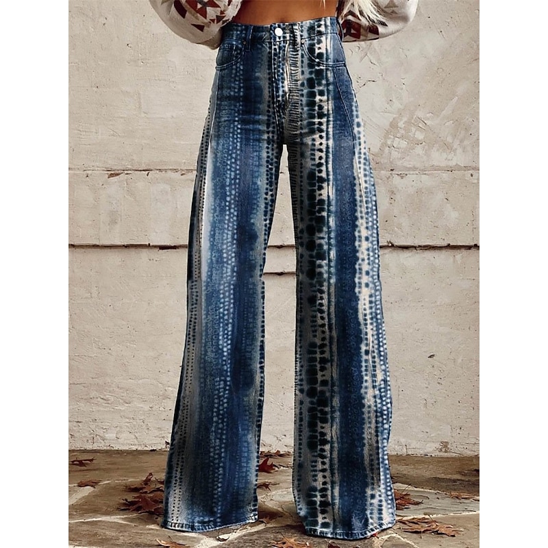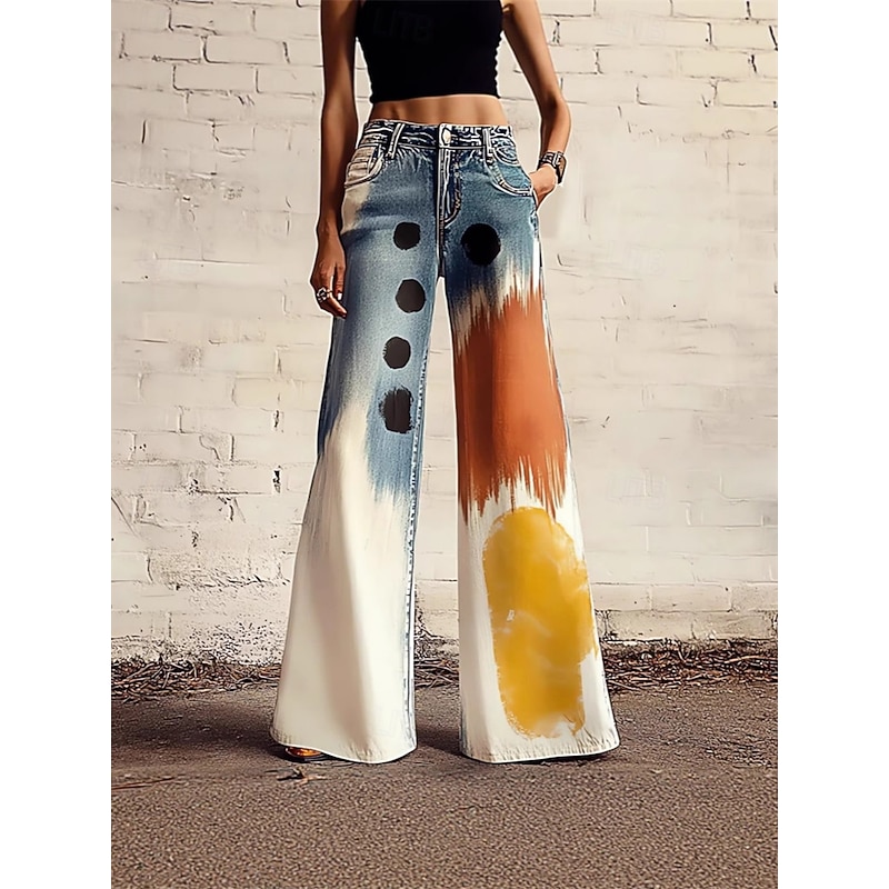 trending ! Retro Vintage Boho 1970s Pants Wide Legged Pants Hippie Disco High Waist Oil Print Faux Jeans Style Fancy Dress Women's Carnival Casual Daily Music Festival Retro Theme Party Adults' Pants