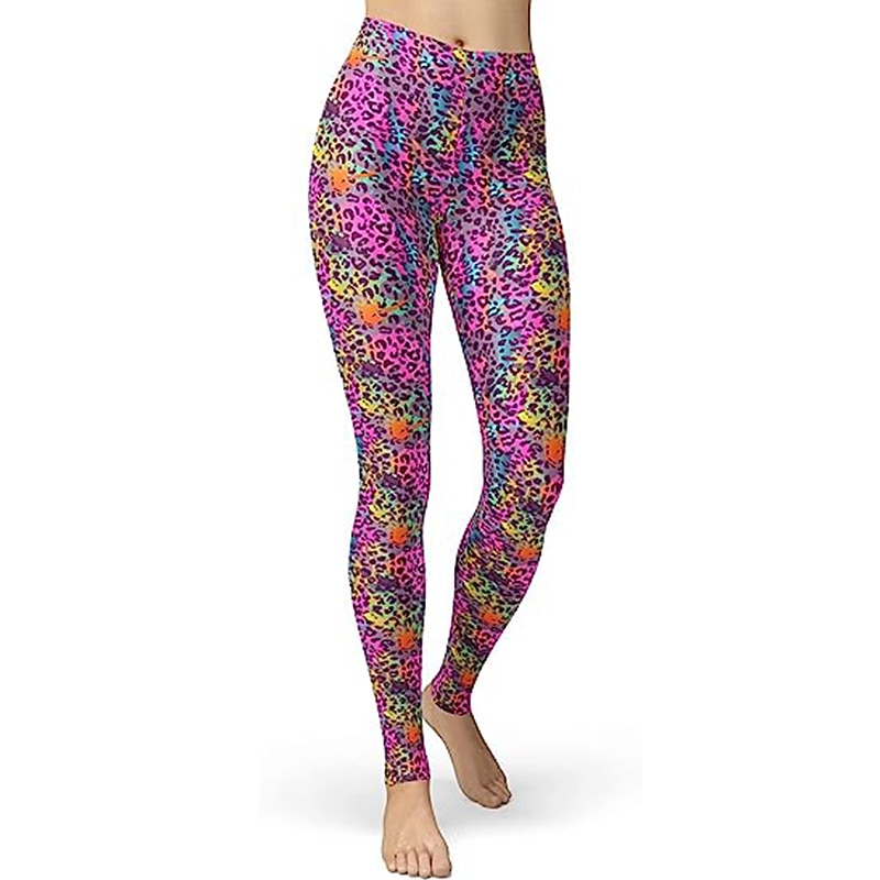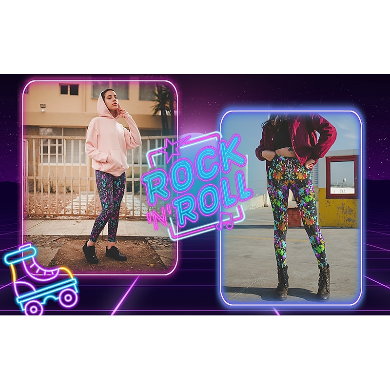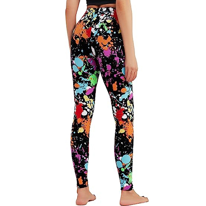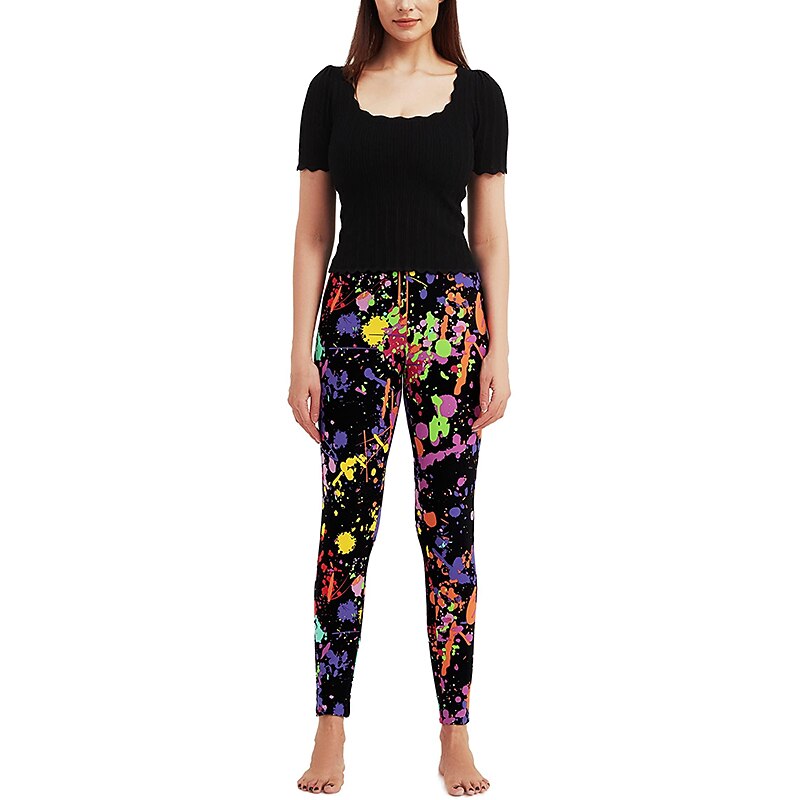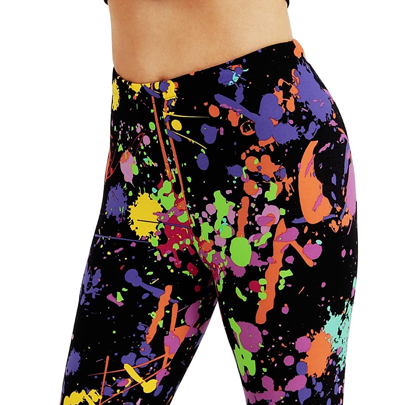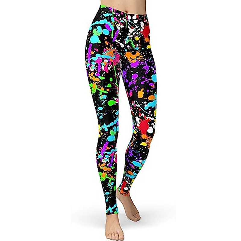 Highlights 95% Polyester, 5% Elastane Elastic closure Machine Wash MATERIAL: Buttery plush fabric, 4-way stretchy elastic material. Machine-washable, recommended cold hand wash, hang dry SIZE: S(4-6) for Waist 27-28, Hips 37-38. M(8-10) for Waist 29-30, Hips: 39-40. L(12-14) for Waist 31-33, Hips: 41-43. XL(16) for Waist 34-37, Hips: 44-47. 2XL(18) for Waist 38-41, Hips: 48-51. Ankle full-length footless style superior 3D DIGITAL PRINTβ: 80s color splash leggings, colorful splattered web design neon pattern, messy art ink blob, paintbrush drawing, bright graffiti; No fading DETAILS: Elastic waist provides maximum comfort. The leggings are opaque and thick enough that you never have to worry about embarrassing see-through OCCASION: Suitable for daily wear or workouts, as pajamas, office dress codes. It can match with your favorite dress, blouse, sweater or skirt. Perfect for everyday use. High quality materials and excellent craftsmanship ensure long-lasting durability.
