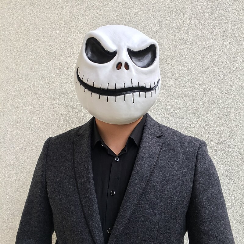 : Inspired by the iconic Jack Skellington, these masks feature an eerie skeleton design with exaggerated eye sockets and stitched mouth patterns. The detailed black accents against the white base make for a hauntingly realistic appearance, outstanding for immersing yourself in the Halloween spirit.
