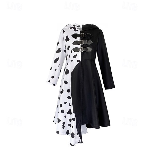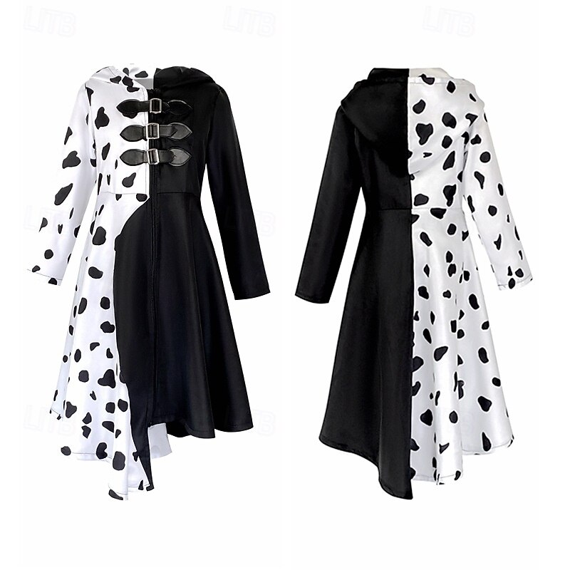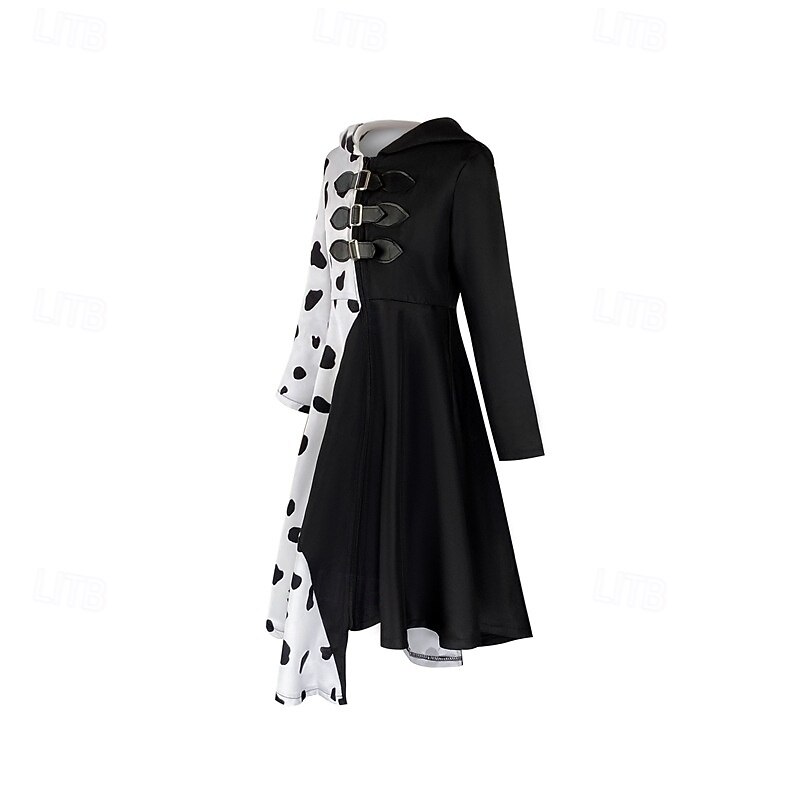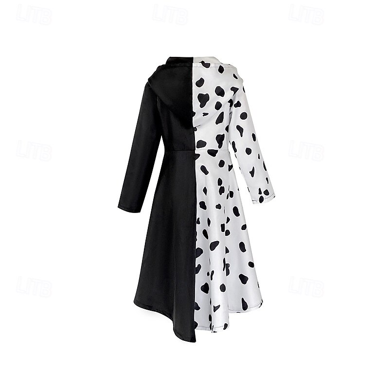 trending ! One Hundred and One Dalmatians Cruella De Vil Dress Masquerade Cosplay Costume Dress Up Movie Cosplay for Girls' Kid's Masquerade Party & Evening