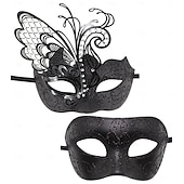 Highlights [Fabric] : Crafted from lightweight and durable plastic materials, these elegant masquerade masks offer comfort without compromising on luxury. The intricate detailing and embellishments give them a sophisticated touch suitable for any formal event. [Fit] : Designed to provide a snug yet comfortable fit, these masks are secured with adjustable satin ribbons ensuring they stay in place throughout the evening. Suitable for women, they're perfect for long wear during special occasions. [Design Highlights] : Each mask boasts rare design elements that elevate its aesthetic appeal. The top mask features lace-like patterns with a prominent decorative element reminiscent of a butterfly or filigree design, exuding mystique and elegance. Meanwhile, the lower mask showcases an intricate swirling motif inspired by classic Venetian styles, finished with a stunning black and silver palette. [Occasions] : Ideal for masquerade balls, themed parties, Halloween, Carnival, and Mardi Gras. These masks make a striking impression, adding charm and allure to any special occasion where standing out is essential. [Size Notice] : Suitable for adults, specifically women, with adjustable features to accommodate various face shapes and sizes, ensuring a secure and comfortable fit during any event. Available in a variety of colors: Blue, Gold, Black, Silver, Red, and Purple. Perfect for everyday use. excellent materials and excellent craftsmanship ensure long-lasting durability.