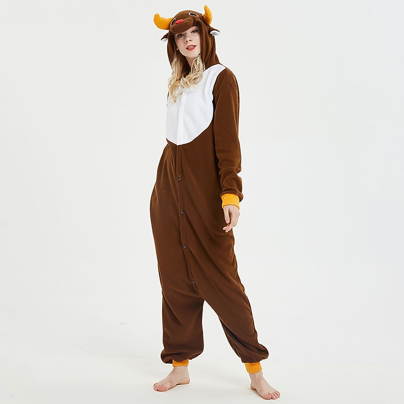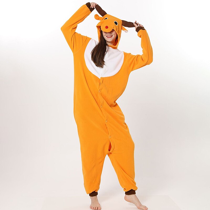 Highlights [Adults' Animal Group Costume Onesie Pajamas] [Fabric] : Crafted from polar fleece and polyester fiber, these onesies offer a soft touch and excellent warmth retention, ensuring a cozy and pleasant experience for wearers in cooler weather. [Style & Fit] : Featuring a relaxed, oversized fit, these onesies provide maximum comfort and ease of movement. This design includes a button-up front for simplicity and practicality, allowing effortless dressing and undressing. [Design Highlights] : Each onesie boasts rare design elements, such as character hoods with motifs like skeleton faces, cute deer features, or reindeer with antlers. These playful touches enhance the festive and fun spirit of the outfits. [Occasions] : Perfect for carnival events, costume parties, or cozy nights at home. Whether attending a themed gathering or enjoying a relaxed evening, these onesies bring charm and whimsy to a variety of occasions. [Size Options] : Available in a range of adult sizes—S, M, L, XL—catering to different body shapes for an optimal fit and comfort for both men and women.