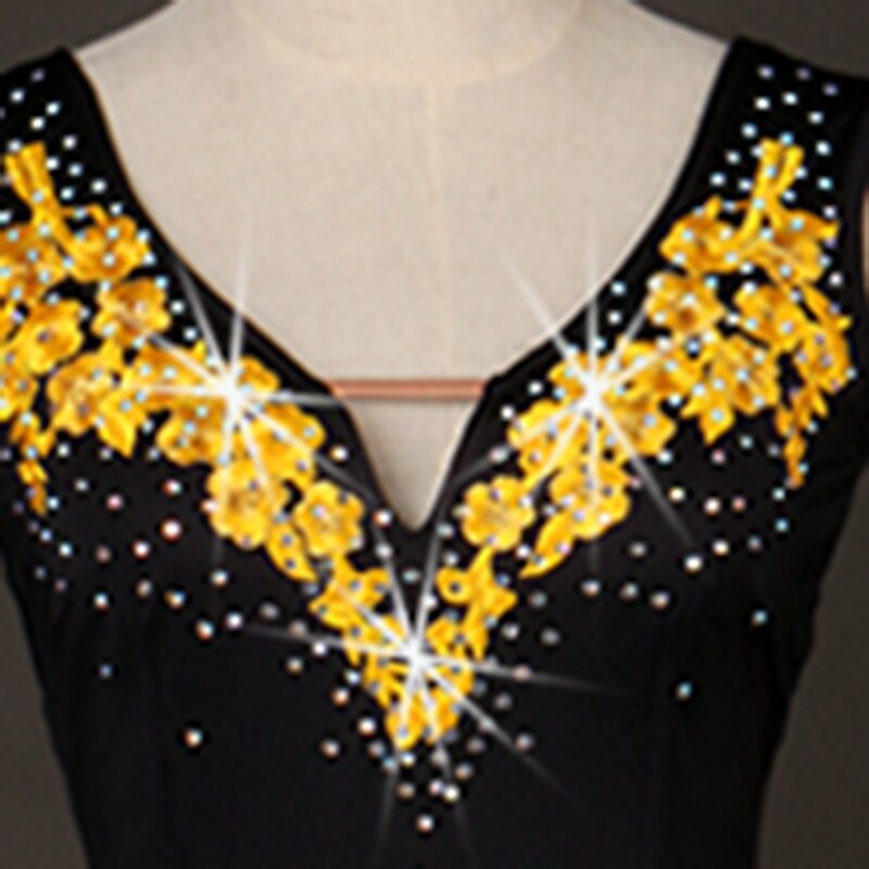 More information about Figure Skating Dress Women's Girls' Ice Skating Dress White Yellow Open Back Patchwork Spandex High Elasticity Training Practice Professional Skating Wear vintage Crystal / Rhinestone Sleeveless Ice