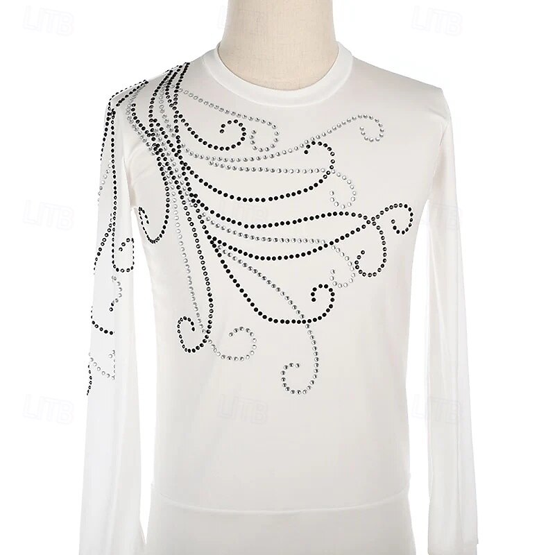 trending ! Men's Boys Figure Skating Costumes High Elasticity Training Competition Skating Wear retro Crystal / Rhinestone Long Sleeve Ice Skating Figure Skating