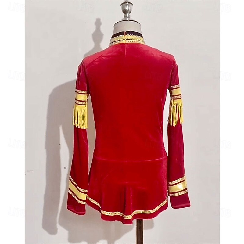 More information about Men's Boys Ice Skating Tops Black Thumbhole Halo Dyeing High Elasticity Training Competition Skating Wear vintage Crystal / Rhinestone Long Sleeve Ice Skating Figure Skating