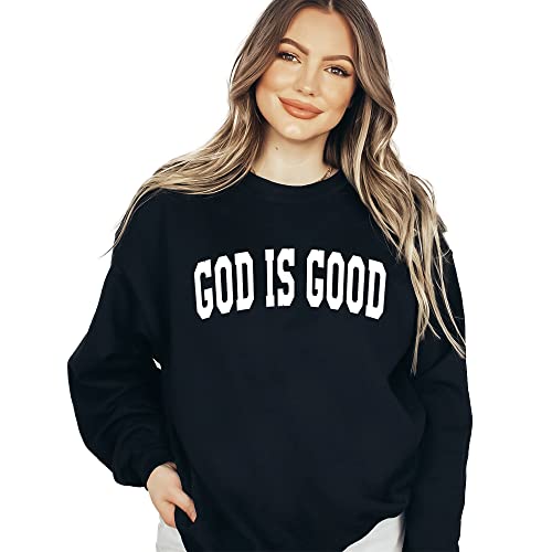 trending ! God is Good Christian Sweatshirt Christian Long Sleeve Shirts Jesus Faith Cross Graphic Casual Loose Pullover Tops Ash