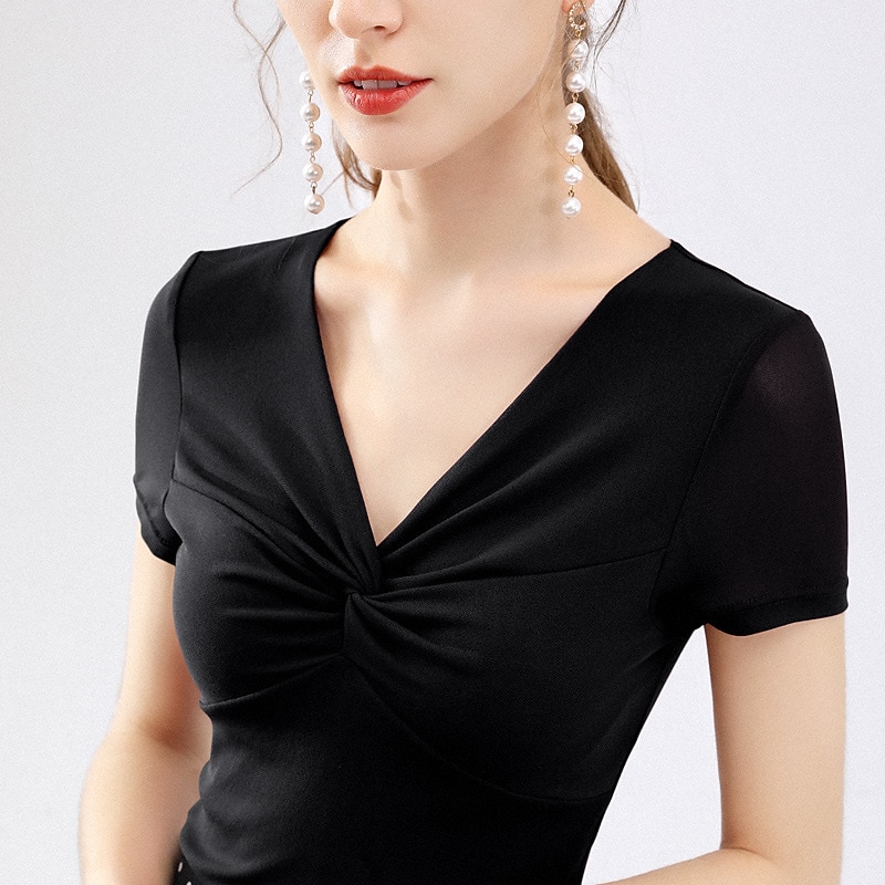 trending ! Ballroom Dance Top Ruching Women's Training Running Short Sleeve Chinlon