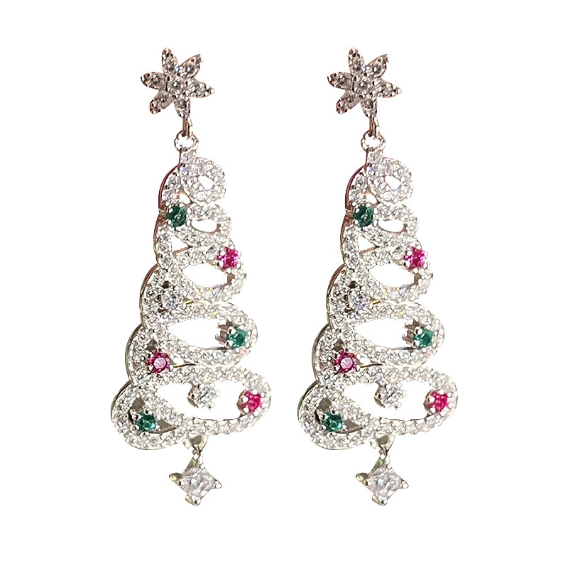 trending ! Rotating Christmas Tree Earrings Colorful Christmas Tree Cute Christmas Earrings Decorative Earrings Women's Micro Set Winter Earrings