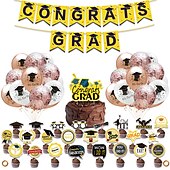 trending ! Graduation Party Supplies, Graduation Party Decorations Black and Gold 48pcs, Include Congrats Grad Banner Grad Black Gold Latex Balloons Gold Confetti Balloons Graduate Cake Cupcake Topper
