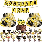 More information about Graduation Party Supplies, Graduation Party Decorations Black and Gold 48pcs, Include Congrats Grad Banner Grad Black Gold Latex Balloons Gold Confetti Balloons Graduate Cake Cupcake Topper