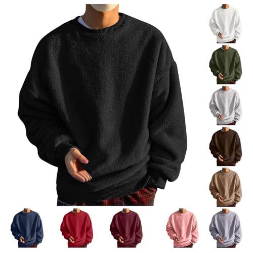 trending ! ZWRXW Men's Fuzzy Sherpa Pullover Sweatshirts Oversized Fleece Plain Sweatshirt Fluffy Loose Fit Crewneck Basic Sweatshirt