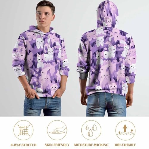 MARSVOVO Cat Camo Hoodies Men Unisex Hoody Drawstring Long Sleeve Pullover Tops with Pocket Hoodies Sweatshirt