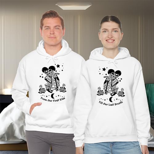 Set of 2 From Our First Kiss Till Our Last Breath Couples Matching Skeleton Hoodies, His & Hers Shirt, wedding Gift for Husband Wife