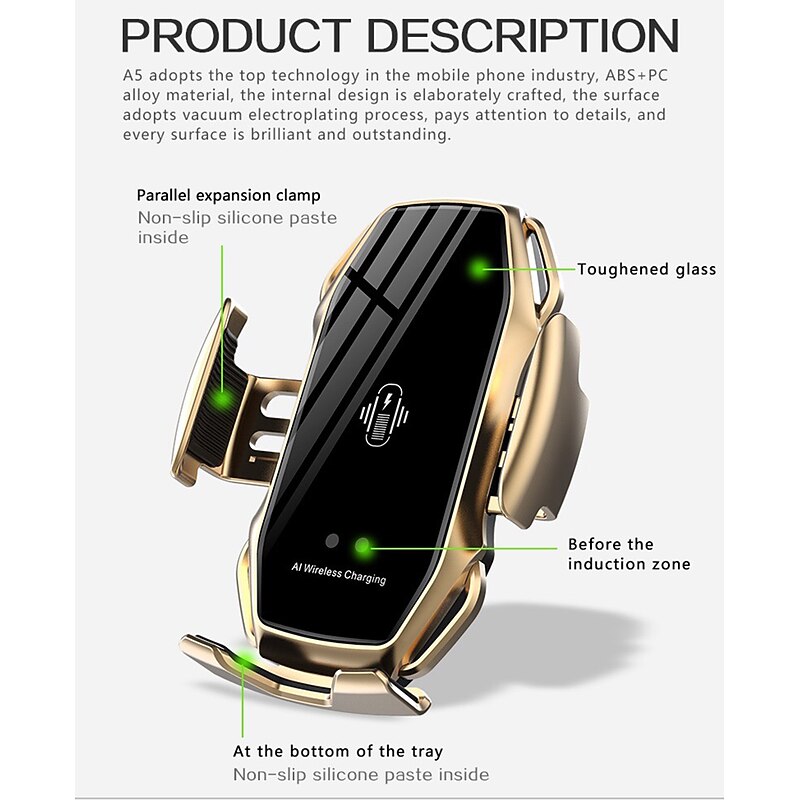 This Smart Sensor Car Phone Holder Fast Charging Wireless Chargers Infrared Sensor Automati Clamping Fast Charging Phone Holder Mount Car Charger For iPhone Huawei Samsung combines elegant design with practical functionality. Every detail has been carefully considered to ensure you get the finest possible experience. The supreme construction means this product will serve you well for years to come.