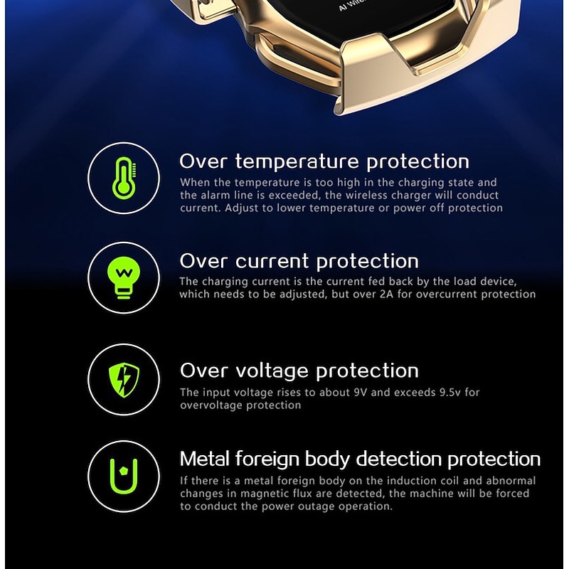 - Tempered glass charging panel for powerful wear resistance and improved charging performance.