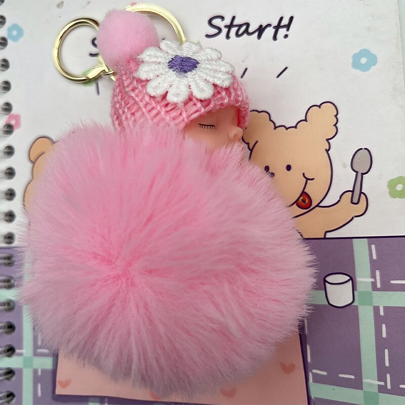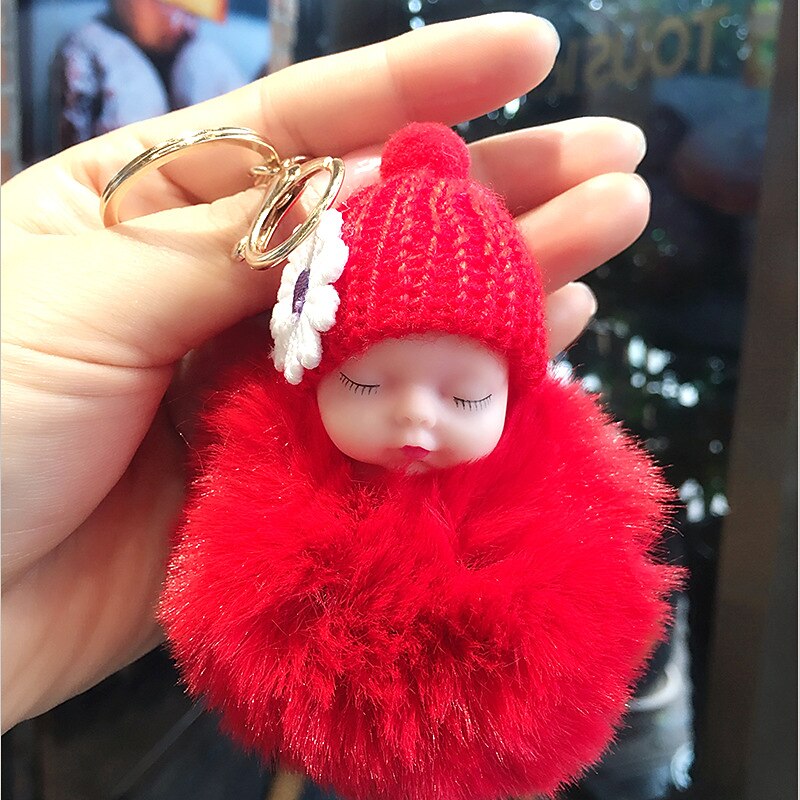 trending ! Cute PomPom Sleeping Baby Doll Car Key Chain Creative Car Keychain Car Key Ring Bag Pendant
