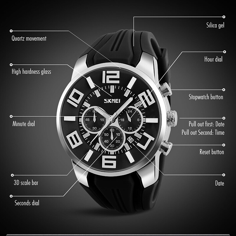 Mens Skmei Stop Watch Luxury Watches Silicone Strap Casual Watches For Men Waterproof Quartz 9128 Clock