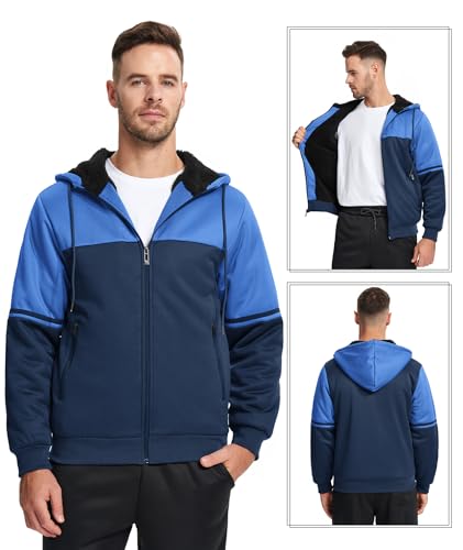 JACKETOWN Men's Heavyweight Fleece Hoodies full Zipper Thick Sherpa Lined Sweatshirt Wool comfortable Coat