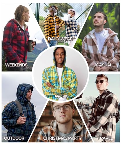 • OCCASSIONS -- Our men's flannel hoodie flawless in Spring, Fall and Winter. Not only suitable for daily wear but also casual, office, school, travel, camping, street and festival. excellent gifts for your friend, dad, son, husband, and yourself.