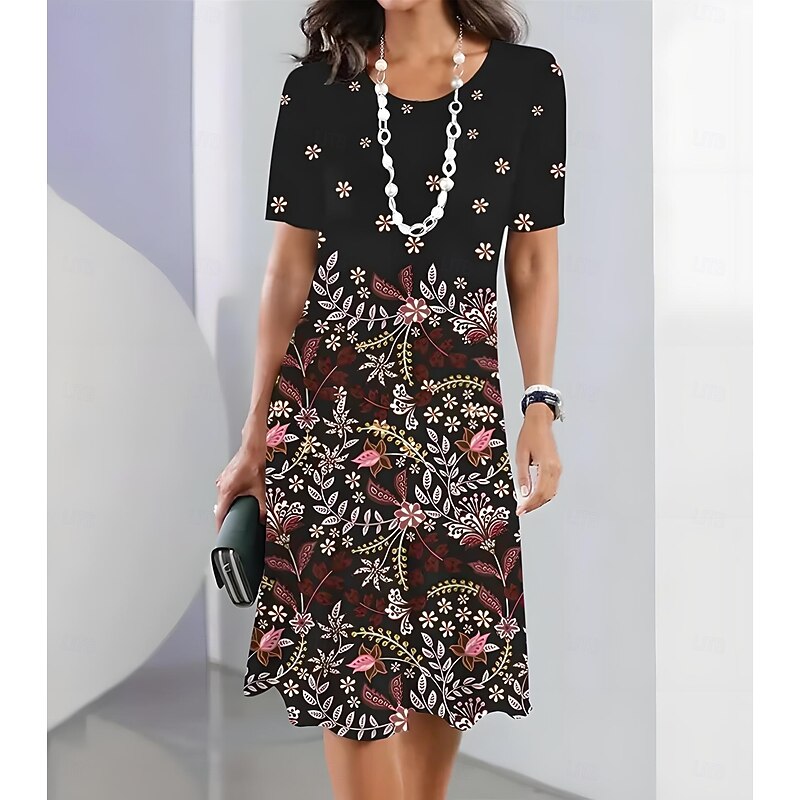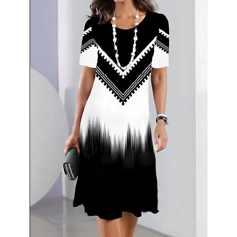trending ! Women's Elegant Party Evening Midi Dress Crew Neck Short Sleeve Shift Dress A Line Dress Casual Boho Regular Fit Ombre Graphic Geometric Black Wine Blue Sky Blue