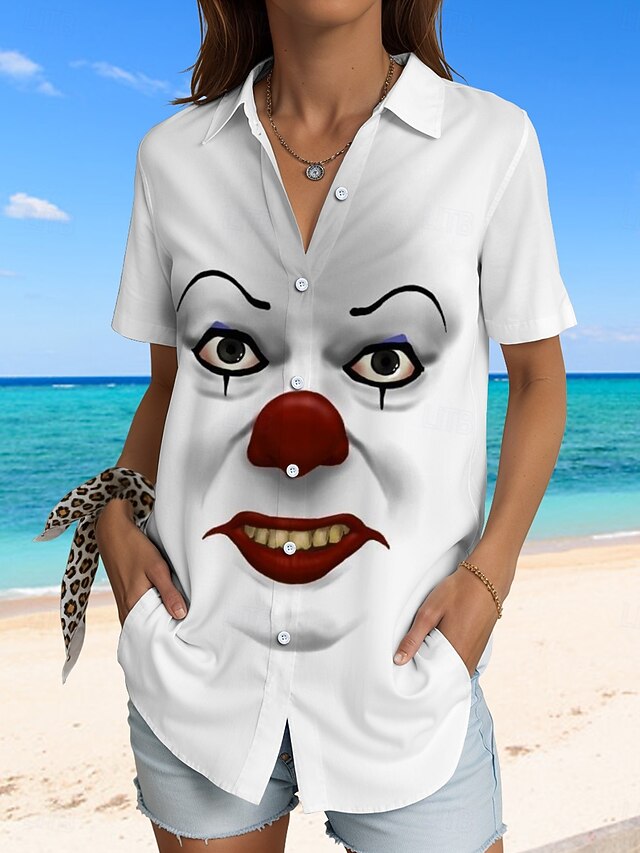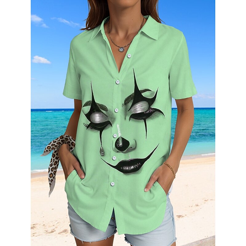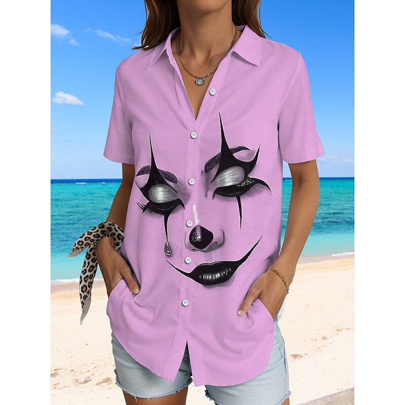 Why Choose Women's Shirt Long Sleeve Button Down Blouse Graphic 3D Vintage Tropical Daily Short Sleeve Shirt Collar Regular Tops Daily White Yellow Pink Blue Green Summer Spring?