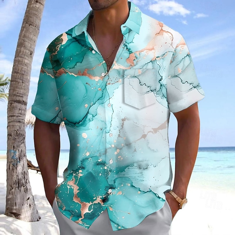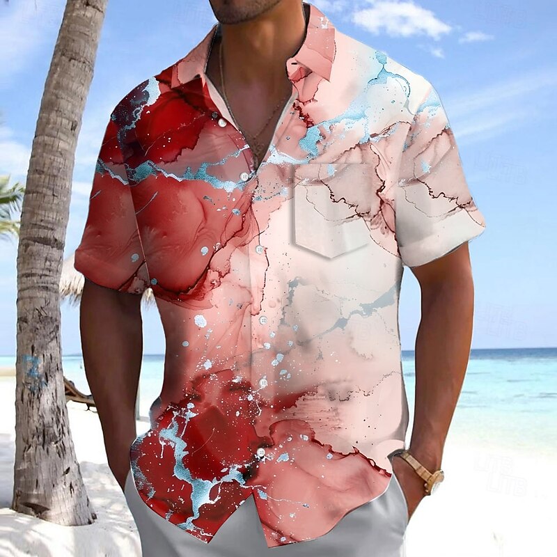 trending ! Men's Geometric Abstract Marble Shirt Summer Shirt Button Up Shirt Short Sleeve Fashion Casual Outdoor Vacation Dailywear Summer Spring Turndown 3D Print Collared Shirts Front One Pocket Yellow Red