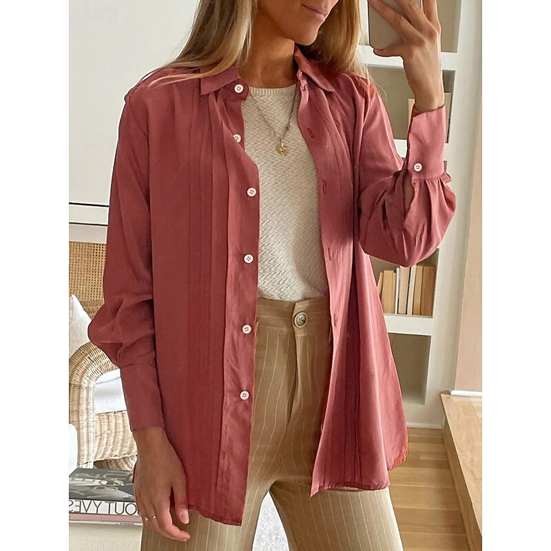 Why Choose Women's Shirt Jacket snug Breathable Buttons Pocket Casual Plain Vacation Street Daily Wear Going out Single Breasted Regular Turndown Regular Fit Long Sleeve Outerwear Red Fall Winter?