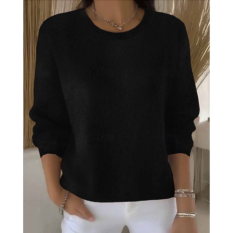 trending ! Women's Sweater Fashion Streetwear Casual Solid Color Ribbed Crew Neck Knitted Long Sleeve Regular Tops Knit Outdoor Daily Weekend Black White Fall Winter