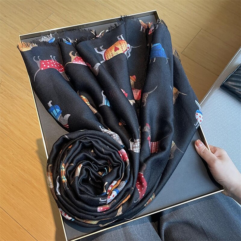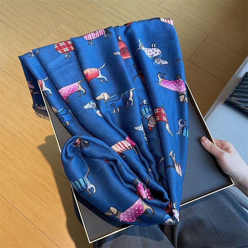 trending ! Women's Rectangle Scarf Street Daily Date Black White Blue Scarf Animal