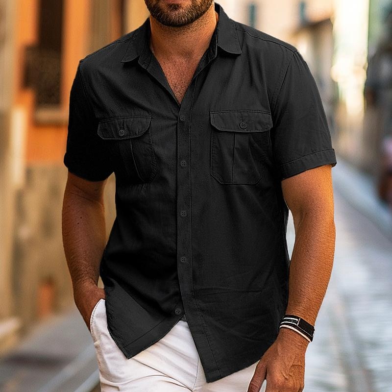 This Men's Shirt Summer Shirt Beach Wear Button Up Shirt Casual Shirt Black White Yellow Blue Dark Green Short Sleeve Solid Color Lapel Daily Vacation Pocket Clothing Apparel Fashion Casual plush combines elegant design with practical functionality. Every detail has been carefully considered to ensure you get the best possible experience. The superior construction means this product will serve you well for years to come.