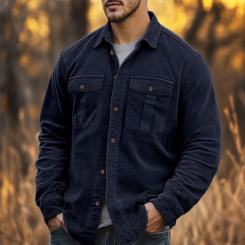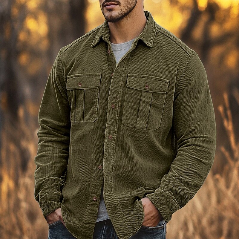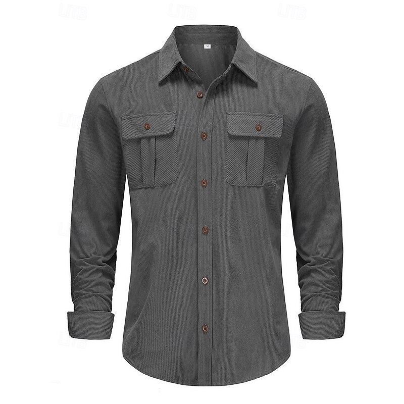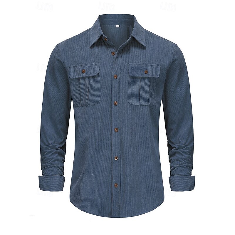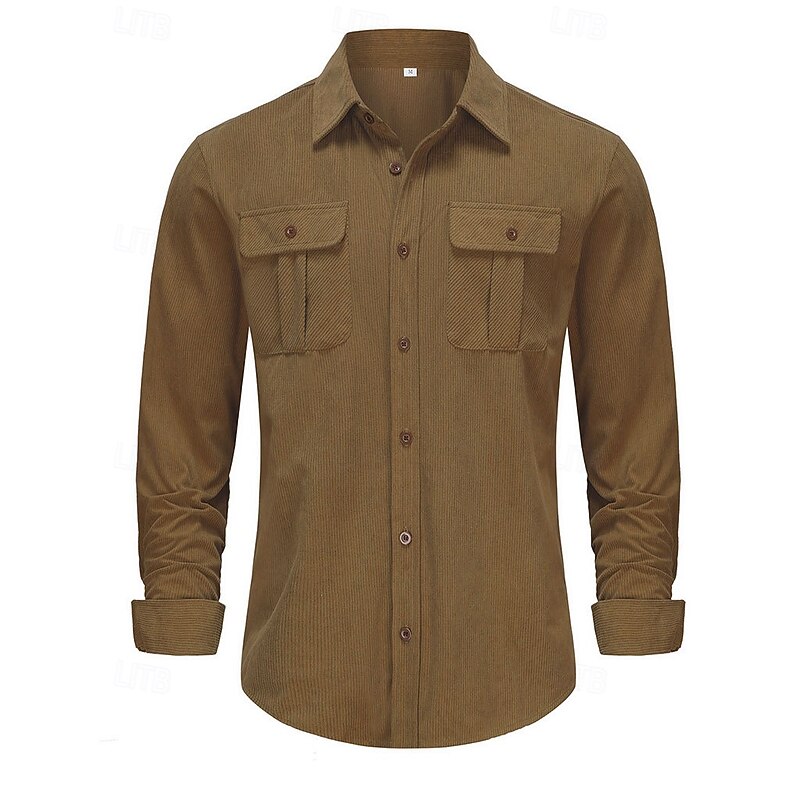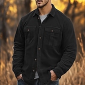This Men's Casual Shirt Corduroy Shirt Button Up Shirt Black Red Navy Blue Blue Green Long Sleeve Solid Color Lapel Vacation Street Pocket Clothing Apparel thermal Fashion Streetwear Outdoor combines elegant design with practical functionality. Every detail has been carefully considered to ensure you get the best possible experience. The superior construction means this product will serve you well for years to come.