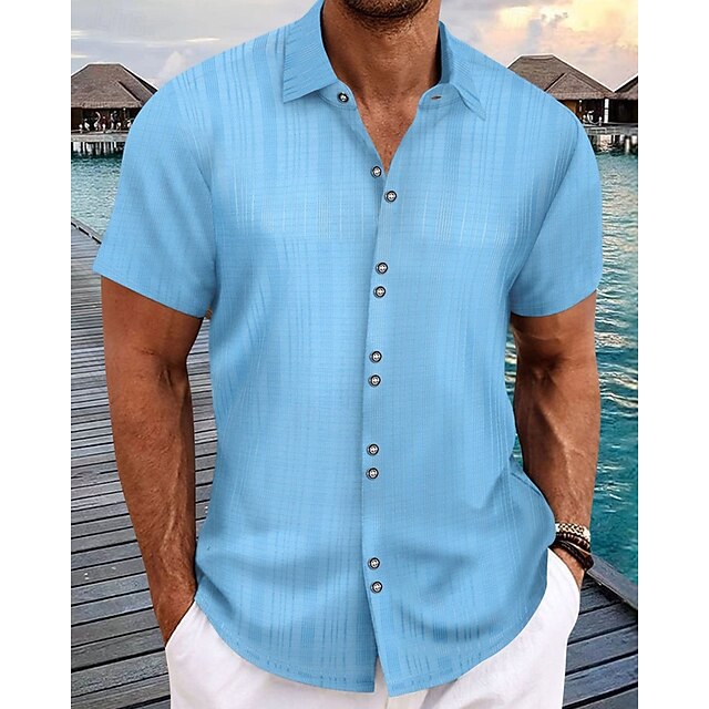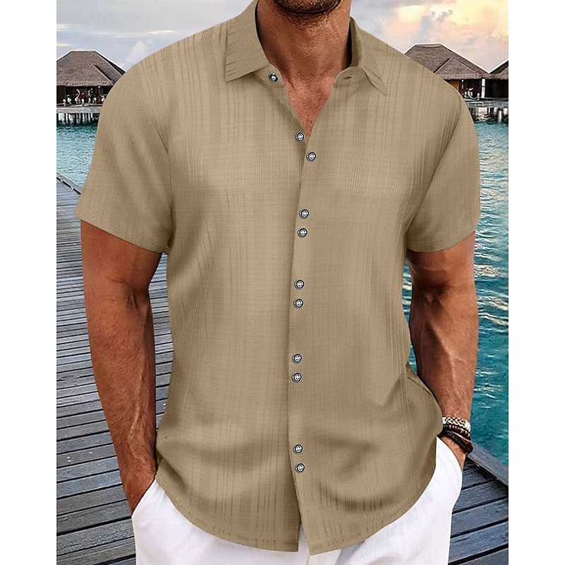 This Men's Shirt Summer Shirt Casual Shirt Beach Shirt Button Up Shirt Black White Navy Blue Sky Blue khaki Short Sleeve Plain Lapel Vacation Hawaiian Buttons Clothing Apparel Polyester Fashion Casual combines elegant design with practical functionality. Every detail has been carefully considered to ensure you get the finest possible experience. The supreme construction means this product will serve you well for years to come.
