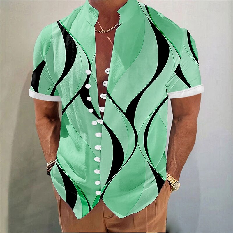This Men's Geometric Lines / Waves Shirt Button Up Shirt Stand Collar Shirt Short Sleeve Fashion Casual Vacation Daily Summer Spring Mandarin Collar 3D Print Linen Like Shirt White Pink Blue Green Khaki combines elegant design with practical functionality. Every detail has been carefully considered to ensure you get the foremost possible experience. The superior construction means this product will serve you well for years to come.