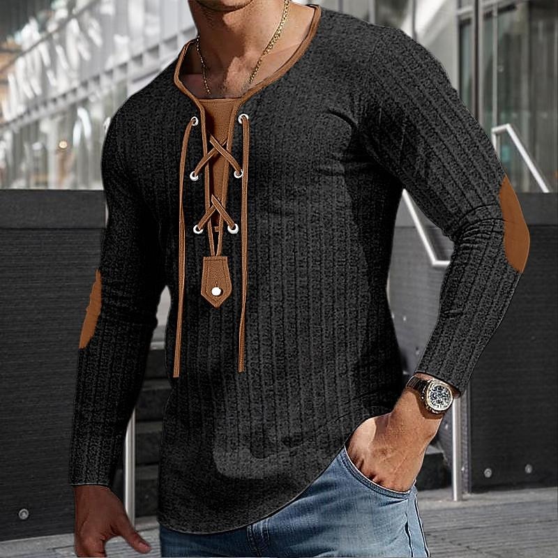 This Men's T Shirt Muscle Shirt Ribbed Knit tee Tee Top Long Sleeve Collar Spring & Fall Color Block Fashion Designer Basic Drawstring Patchwork Vacation Street Going out Dark Grey White Black Top Tee combines elegant design with practical functionality. Every detail has been carefully considered to ensure you get the foremost possible experience. The superior construction means this product will serve you well for years to come.