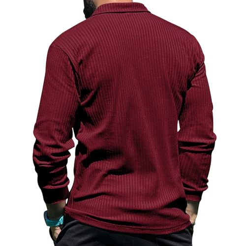 Men's Lapel Solid Knit Pullover Long Sleeve Slim Male Knitted Sweaters Causal Button Design Basic Sweater