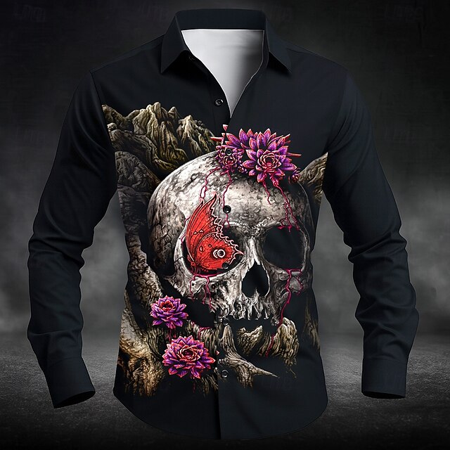 $25.99 - A Glance of Evanescence by Sarah Richter Men's Skull Floral Print Flowers Button Up Shirt Long Sleeve Designer Shirt Limited Artist Edition 2025. Shop for cheap Day Of The Dead Costume online? Buy at lightinthebox.com on sale today!