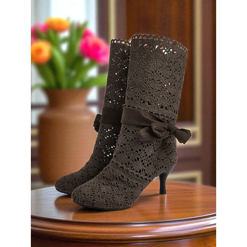 Why Choose Women's Brown Crochet Lace Mid-Calf Boots with Kitten Heels and Bows - 1900s Edwardian Victorian Style Dress Boots for Ladies, Ideal for Fall Outfits, Costumes, and Tea Parties?