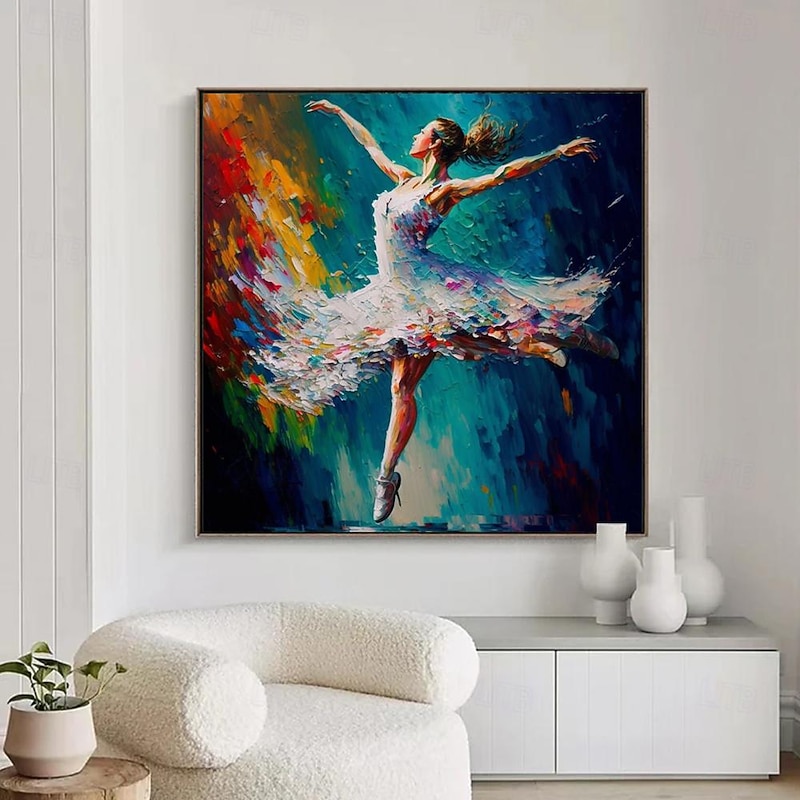 Why Choose Oil Painting Handmade Hand Painted Square Wall Art Impression Dancer Canvas Painting Home Decoration Decor Stretched Frame Ready to Hang?