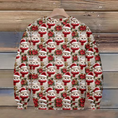 Men Pullover Sweater Cute Novelty Y2k Lined Long Sleeve Pullover Funny Christmas Big and Tall Sweaters for Men