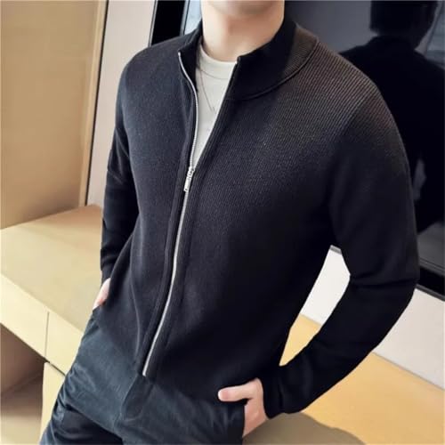 Men’S Thick Knitted Sweatercoat Slim Fit Stand Collar Long Sleeve Full Zip Solid Casual Outerwear