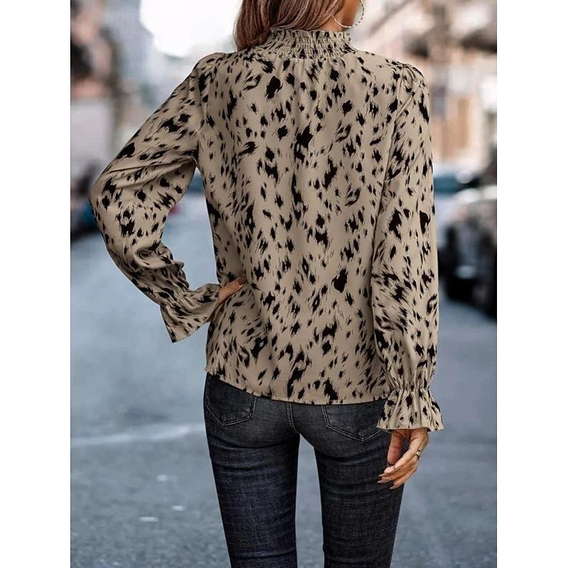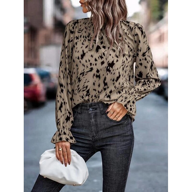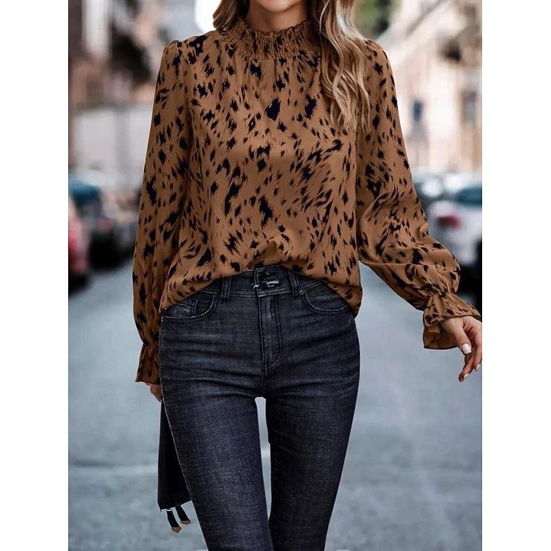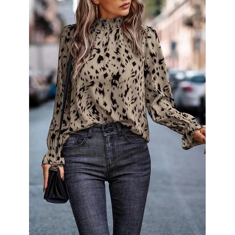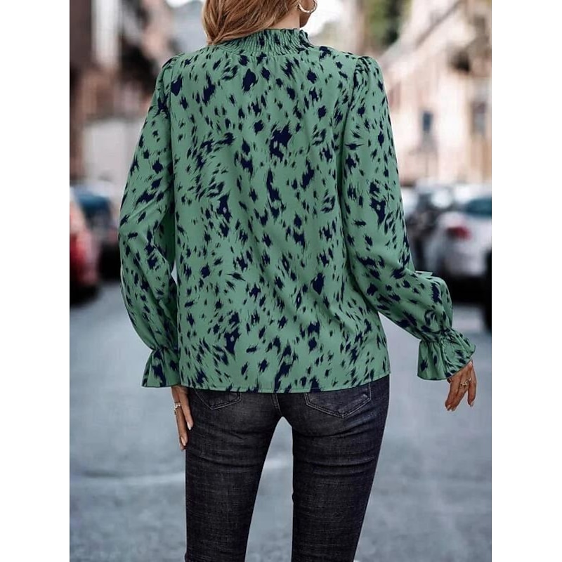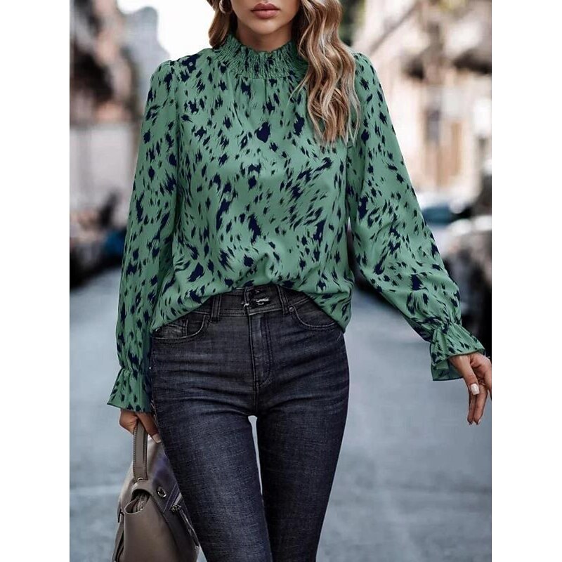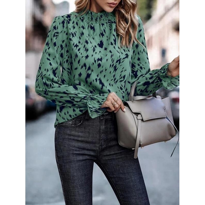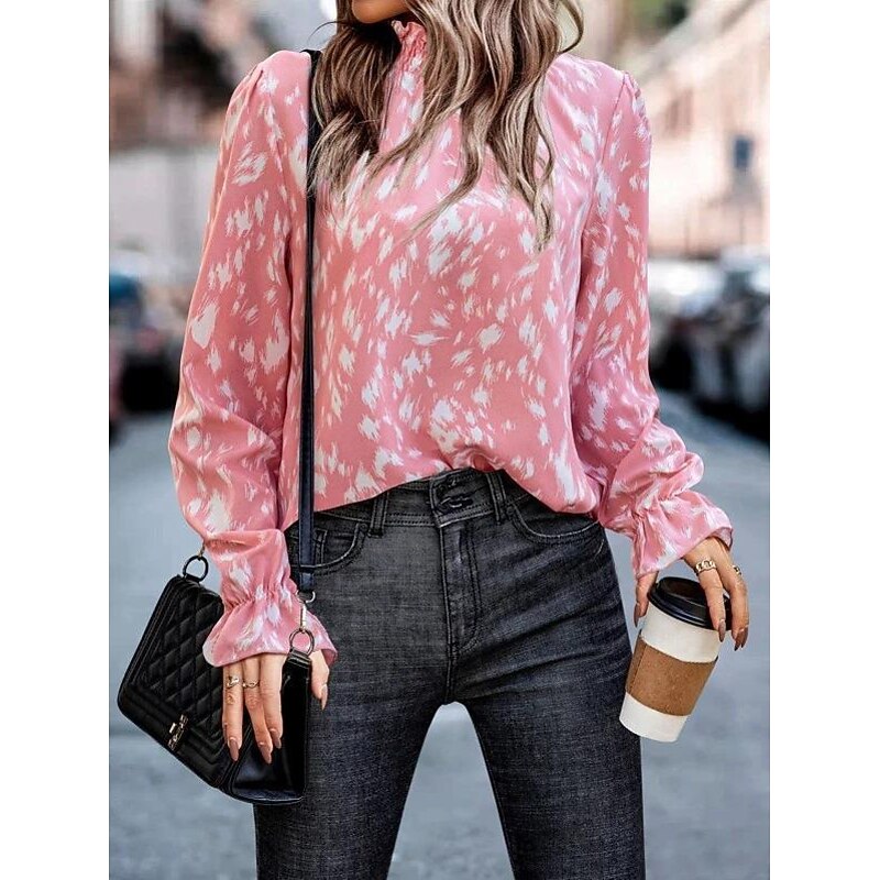 This Women's Shirt Blouse Fashion Print Petal Sleeve Long Sleeve Regular Tops High Neck Casual Pink Blue Brown Green Khaki Spring & Fall combines elegant design with practical functionality. Every detail has been carefully considered to ensure you get the foremost possible experience. The superior construction means this product will serve you well for years to come.